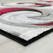 Modern color palette and curvaceous lines combine to make a collection of pieces that gleam with dramatic flair. The swirling motif offers a line breaking pattern to the room and help break the rigidity with organic shape. Splashes of brighter color boost the effect of the patterns and draw attention towards the rug.