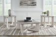 Isn’t it time for a change? This table set captures the essence of today’s casual contemporary design. The thick tabletop sits on profiled legs and a stylish cross stretcher with a whitewash wood grain look. These tables exude a relaxed flair that’s sure to complement your good taste.