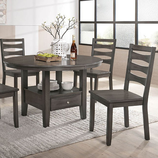 Add country charm to your dining decor with this dining table, featuring a round tabletop with molded trim and tapered legs. The side chairs showca...