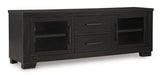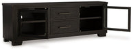 - 2 cabinets with glass front doors, each with an adjustable shelf