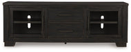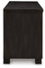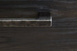 - Metal bar pulls with rustic texture in a dark pewter-tone finish