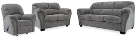 Why sacrifice comfort for style (or style for comfort) when you can have the best of both in this sofa and loveseat in pewter gray. Elements include a chic divided-back design and pillow top wrapped armrests that make nodding off all too easy. Calling attention to the elegantly flared armrests—black nickel-tone nailhead trim for a punch of cool character.